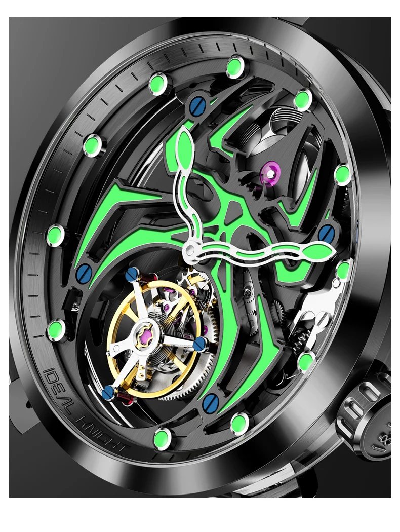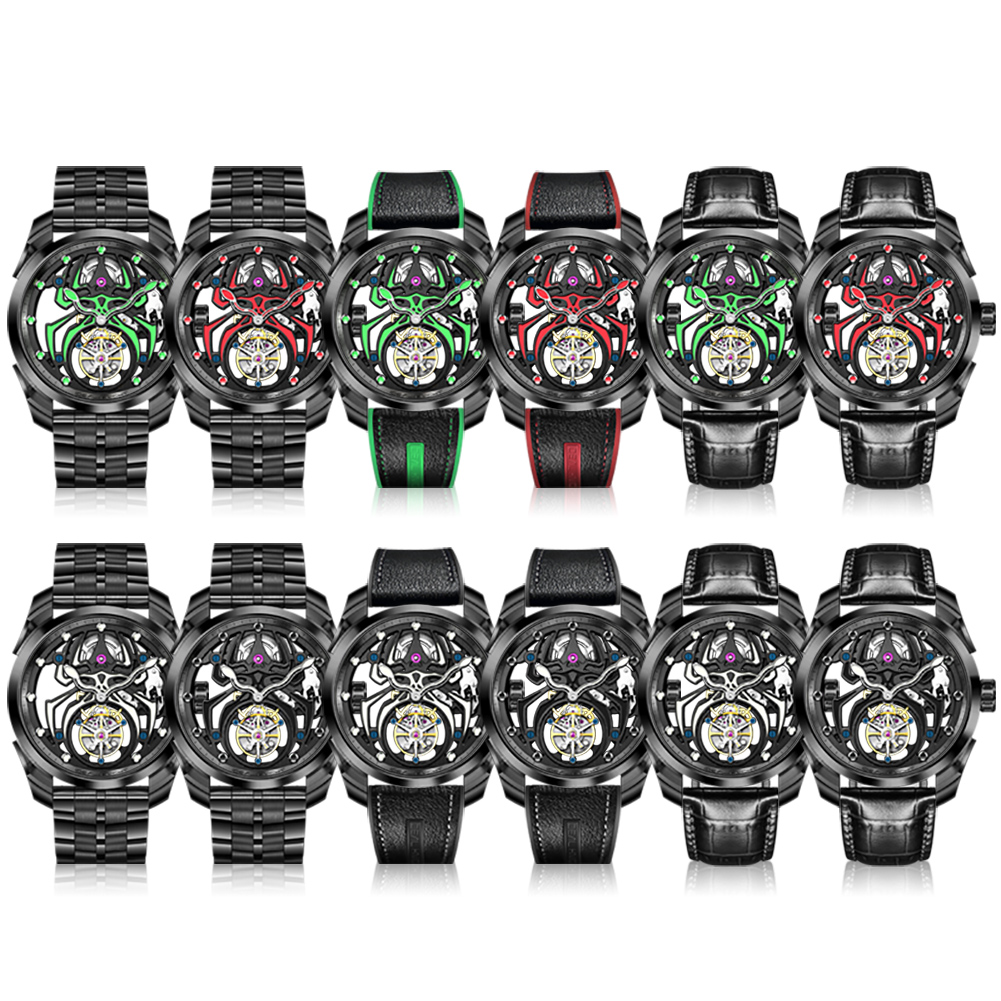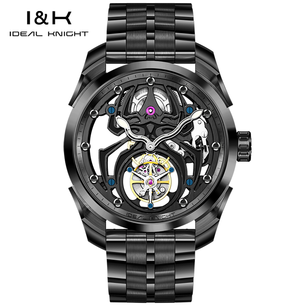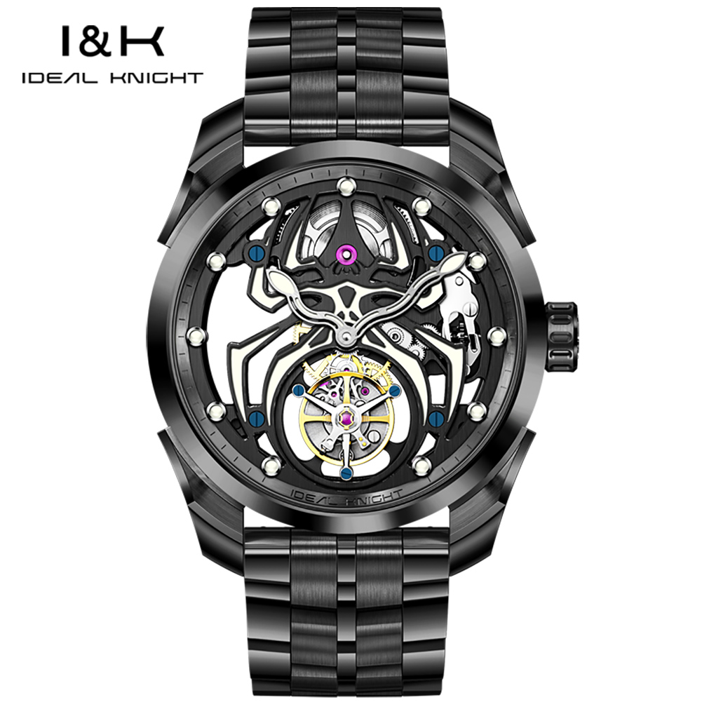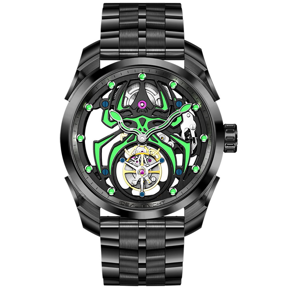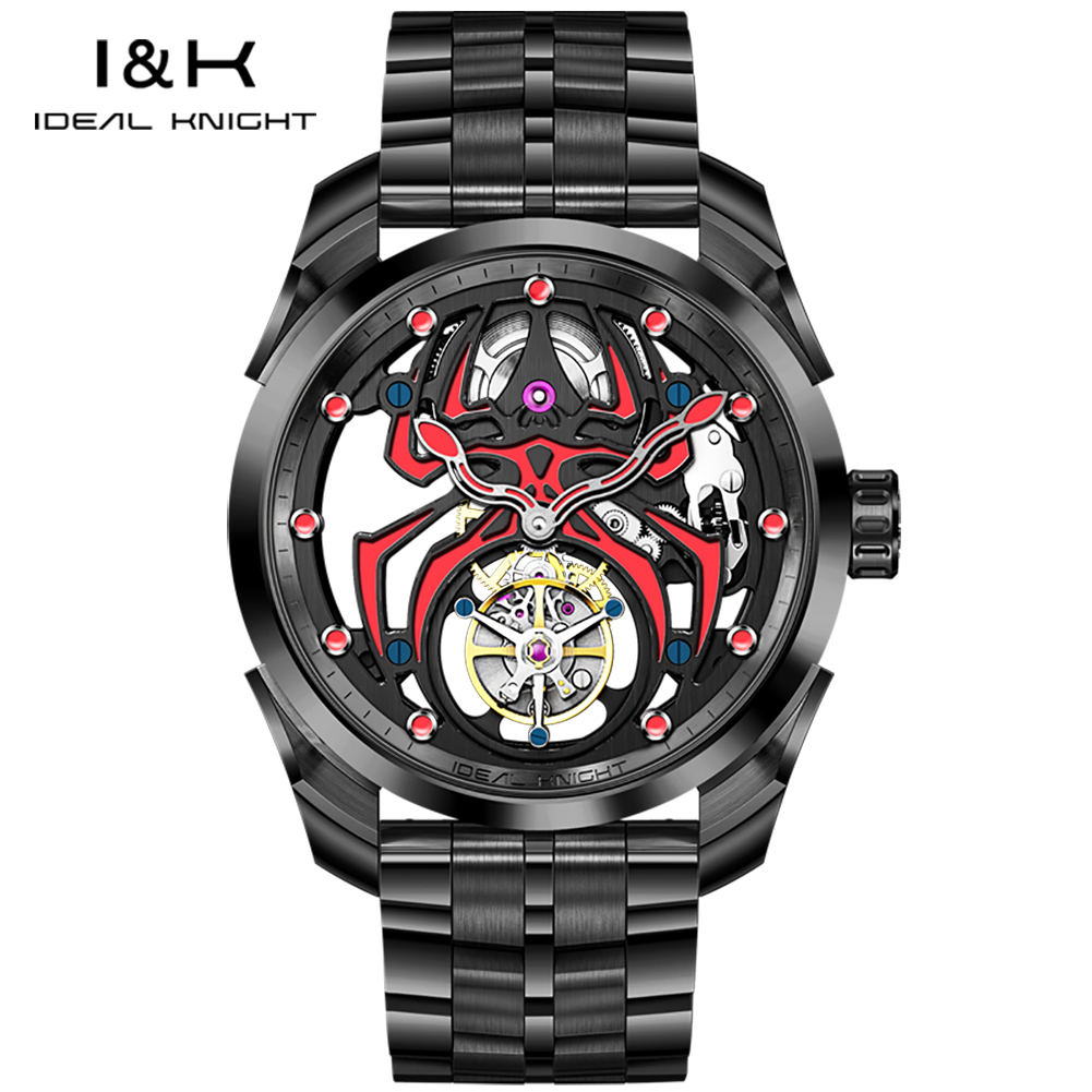 Ideal Knight 6802 Odm High Quality Luxury Stainless Steel Spider Sports Cool Design Luminous Hollow Tourbillon Watch for Man