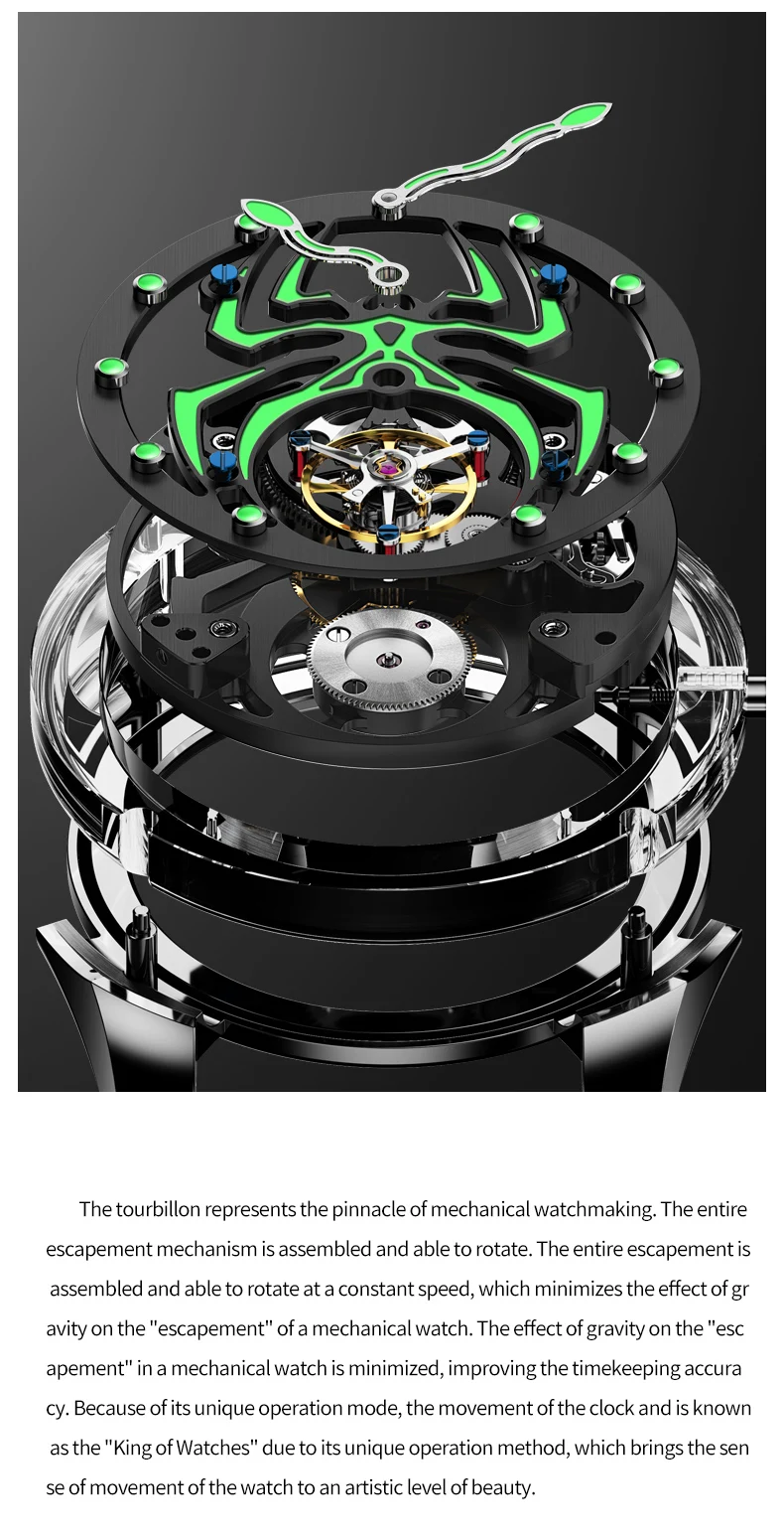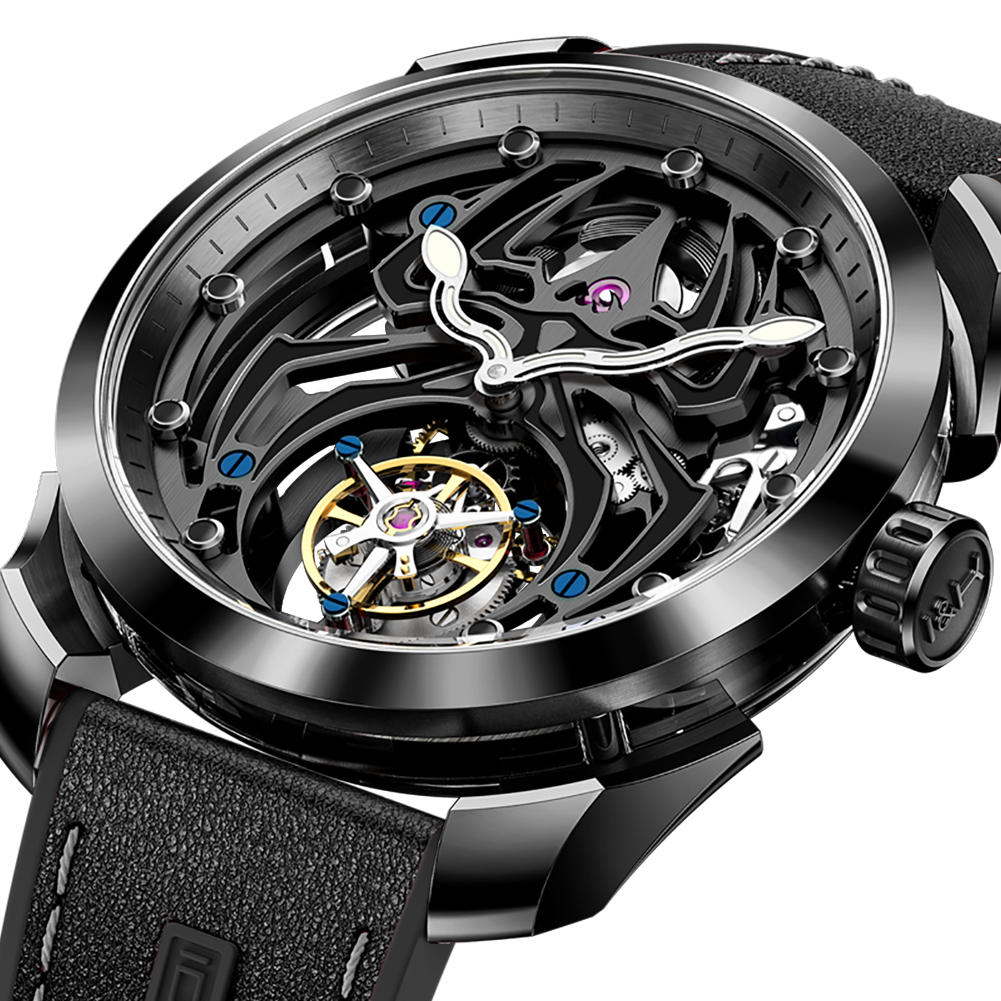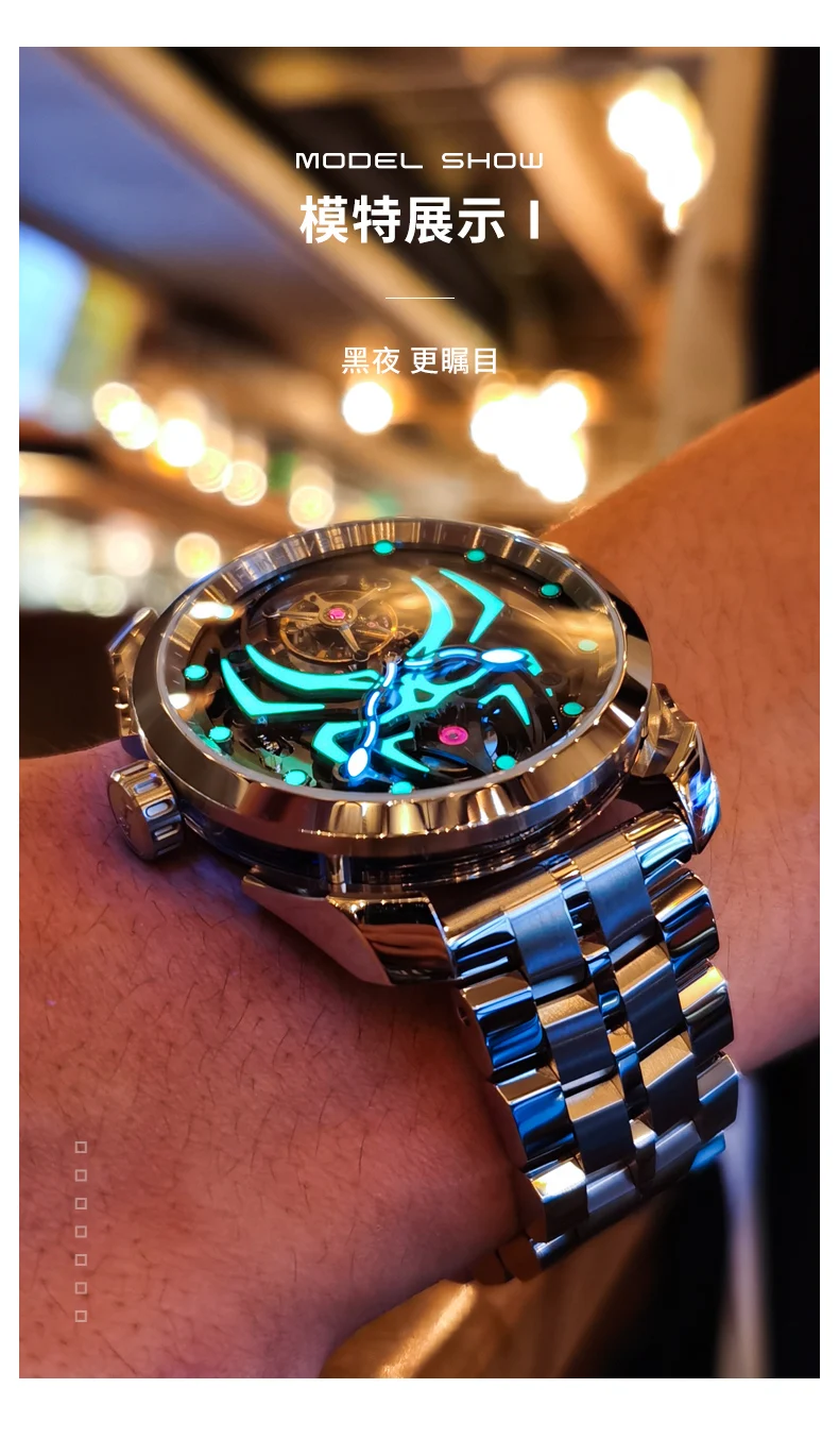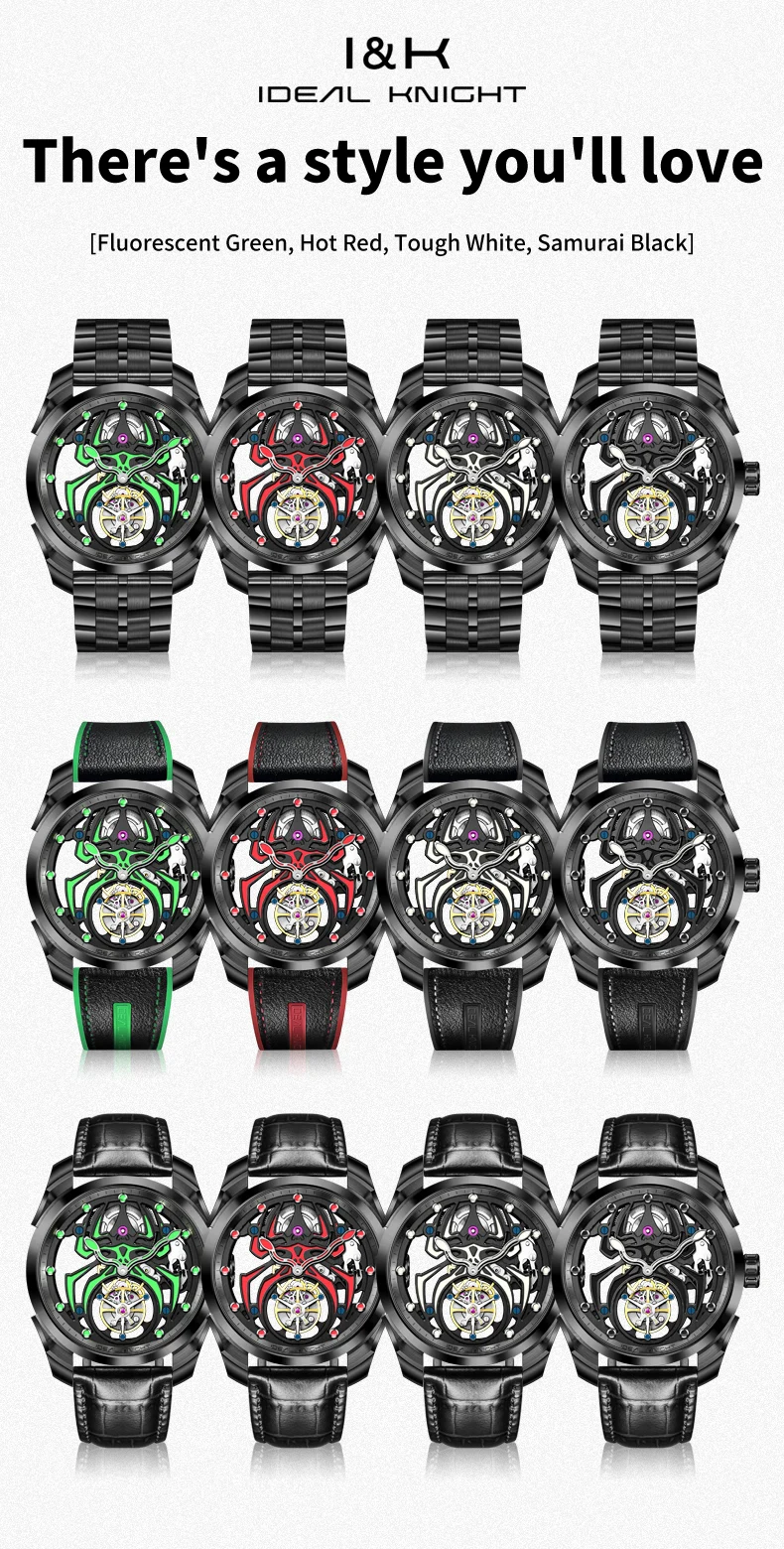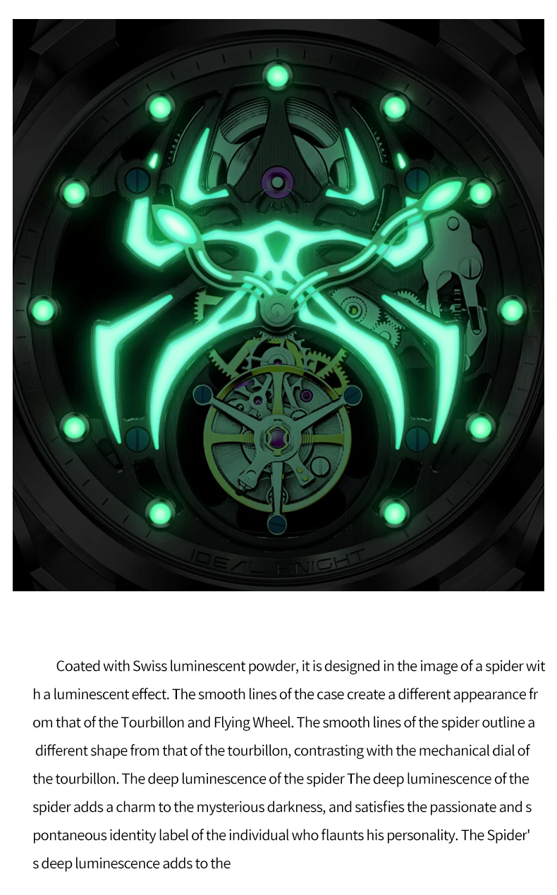 Ideal Knight 6802 Odm High Quality Luxury Stainless Steel Spider Sports Cool Design Luminous Hollow Tourbillon Watch for Man