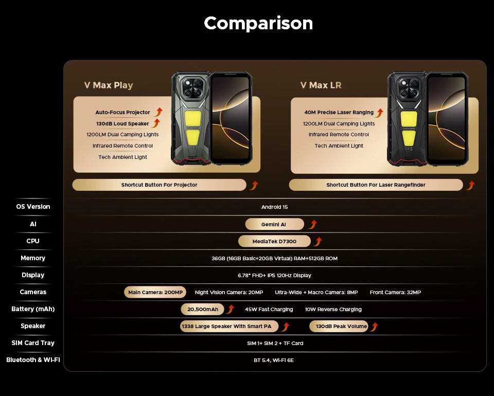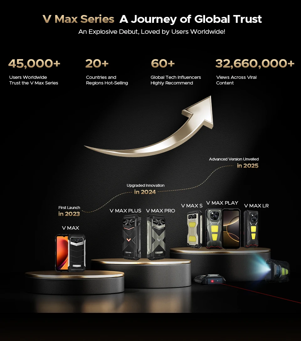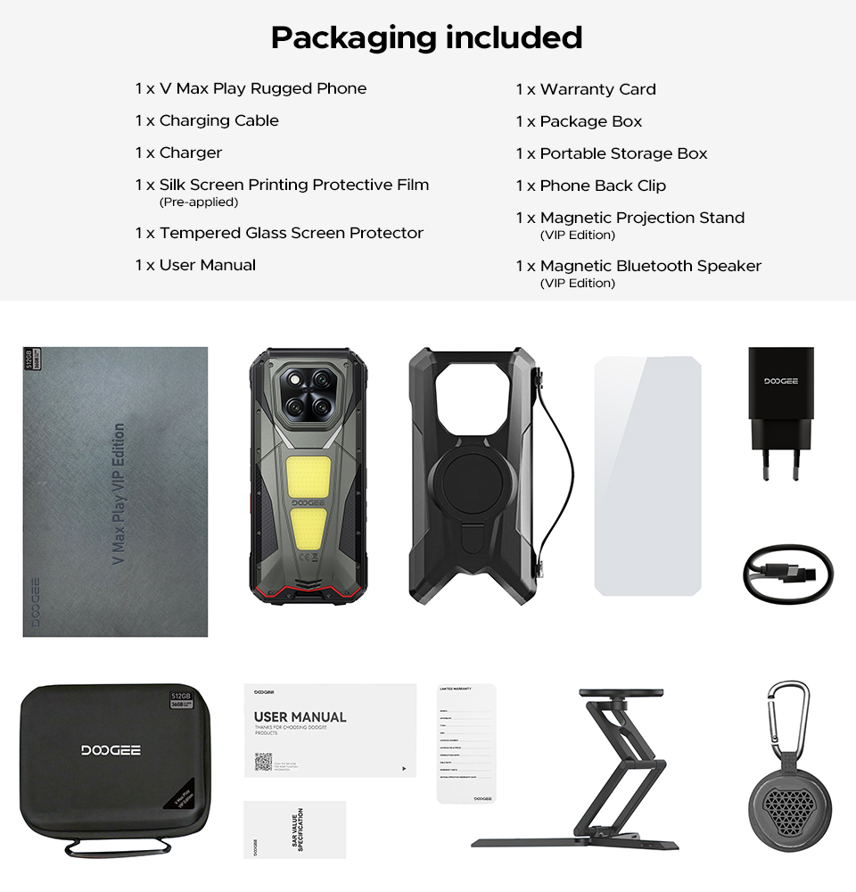 Doogee V Max Play 5G Projector Phone 16+512GB 20500mAh Android 15 Mian 200MP 120HZ Display Doogee Rugged Mobile Phone