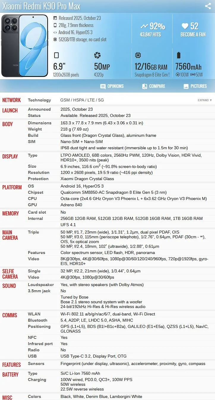 Red Mi K90 Pro Max 512GB Mobile Phone 120Hz Amoled Snap Dragon 8 Elite Gen 5 7560mAh 50MP 5G Smartphone